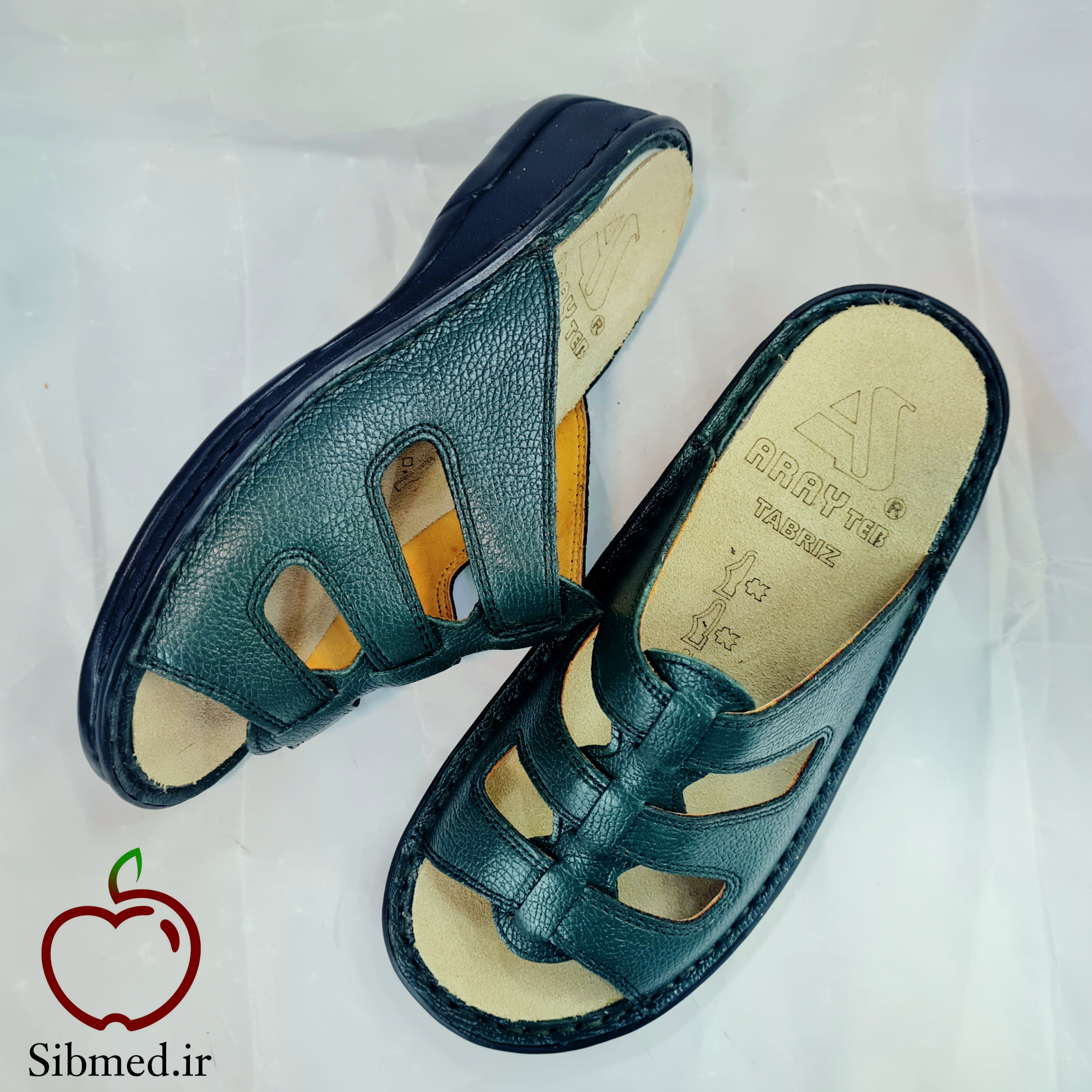 دمپایی طبی چرم چهار فصل زنانه سویل آرای طب با رویه ای از چرم طبیعی گاوی ، آستری و کفی طبی از مموری فوم Goretex ایتالیا محصولی با کیفیت ساخت ایران_تبریز است. در تولید این محصول از بالاترین تکنولوژی روز صنعت کفش جهان استفاده شده است. زیره طبی این مدل با استفاده از مواد اولیه ایتالیایی در 5 لایه طراحی و به رویه آن متصل شده است.طراحی بر اساس رفلکسولوژی طبیعی پا، راحتی،زیبایی و دوام این مدل موجب شده تا گزینه ای مناسب برای افرادی باشد که بسلامتی و راحتی پا خود اهمیت ویژه ای میدهند و بدنبال محصولی با طول عمر بالا جهت ایستادن و پیادروی های روزمره و بلند مدت هستند.این محصول تمام دست دوز بوده و دور تا دور ان با بخیه هایی درشت ، زیره و رویه را به هم متصل کرده تا علاوه بر زیبایی بر دوام ان نیز تاثیر بسزایی داشته باشد . کفی دمپایی طبی با رویه چرم طبیعی و با استفاده از مواد درجه یک ایتالیایی به ضخامت 1.5 سانت با تزریق مستقیم ، این امکان را میدهد که براحتی انرا شستشو و استفاده نمایید .